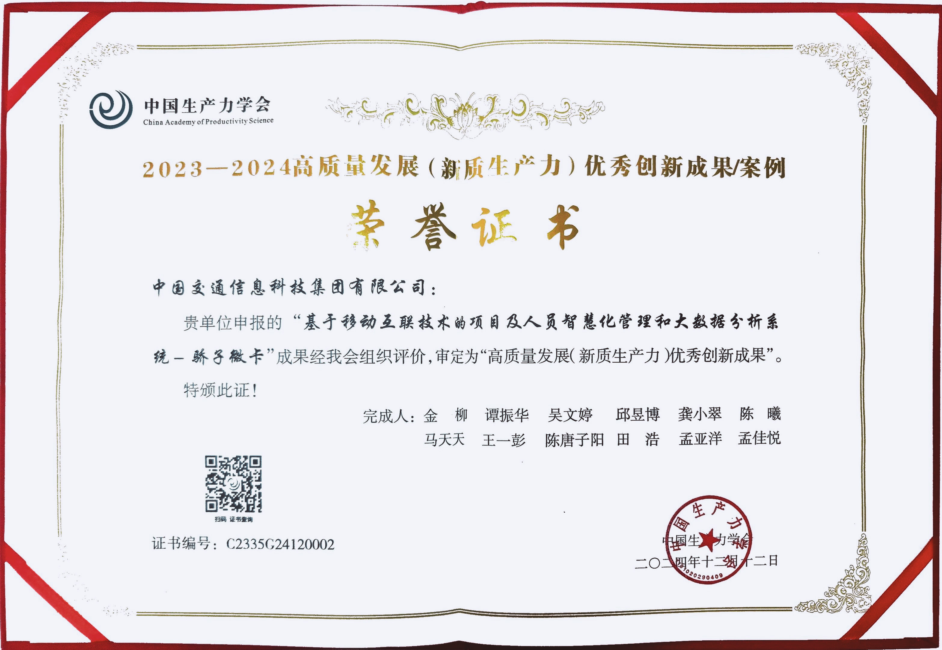 申报单位:中国交通信息科技集团有限公司