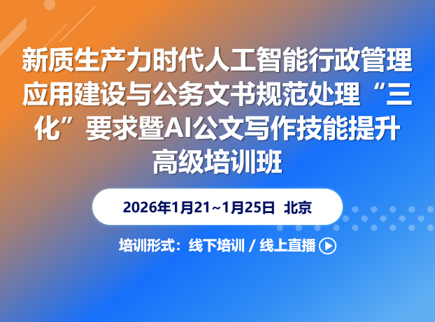 【1月北京】新质生产力时代人工智能行政管理应用建设与公务文书规范处理“三化”要求暨AI公文写作技能提升高级培训班